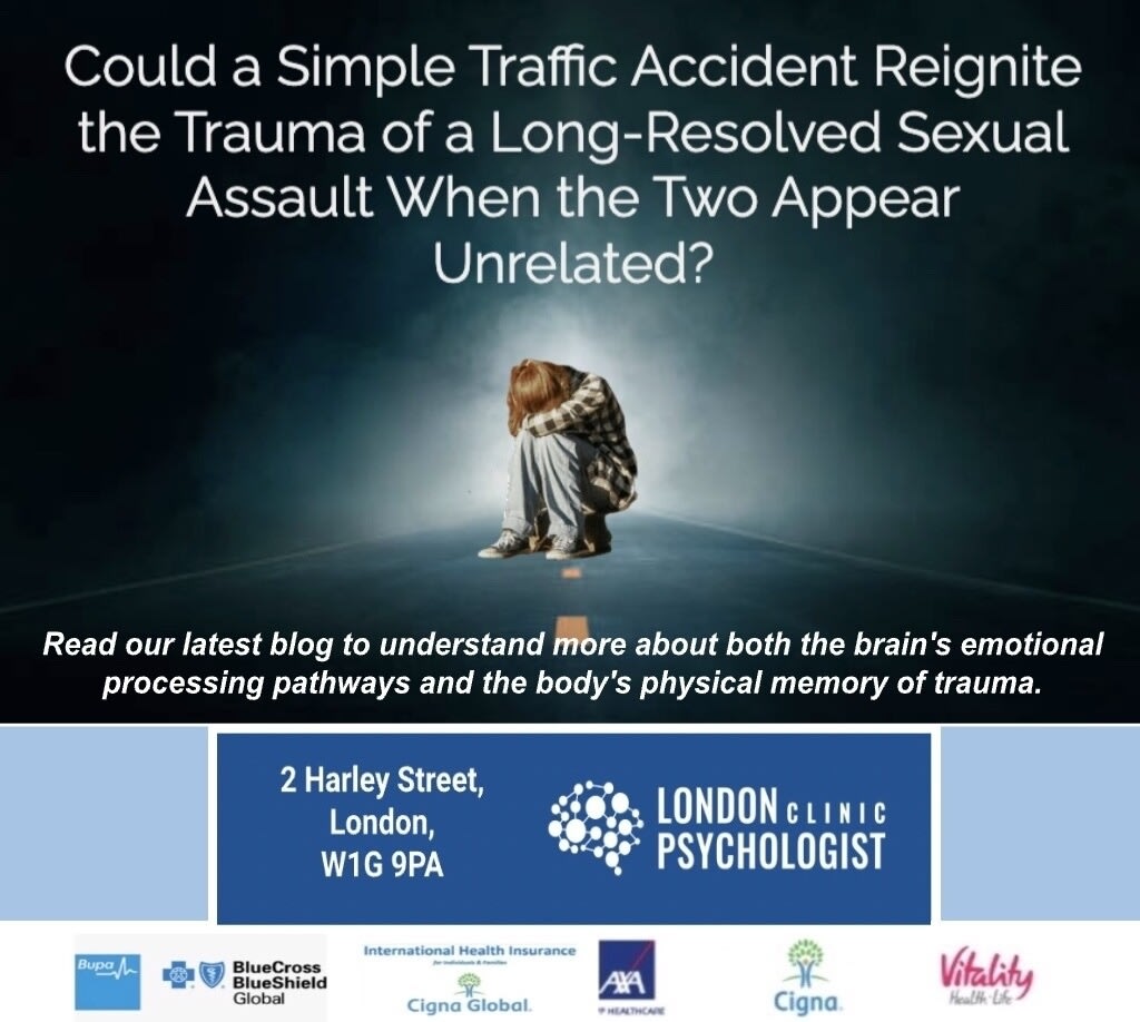 Trauma has profound and lasting effects on both the body and mind. The reactivation of old trauma by new, seemingly unrelated events, such as a car accident, is a testament to how deeply trauma can shape an individual’s response to life. Understanding these effects is the first step toward healing, and with appropriate psychological interventions, individuals can work through their trauma and regain control over their lives. At the London Psychologist Clinic, we specialise in evidence-based treatments to help trauma survivors navigate their healing journey, ensuring that they do not have to face it alone.
