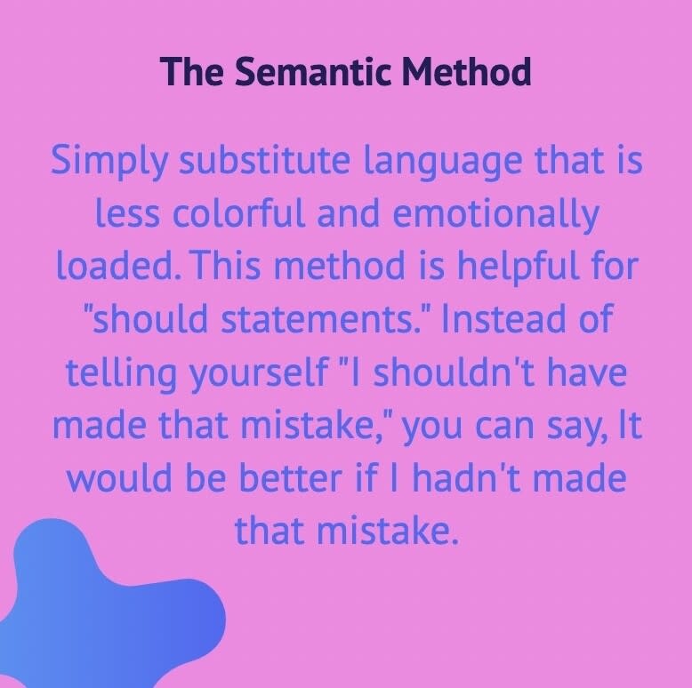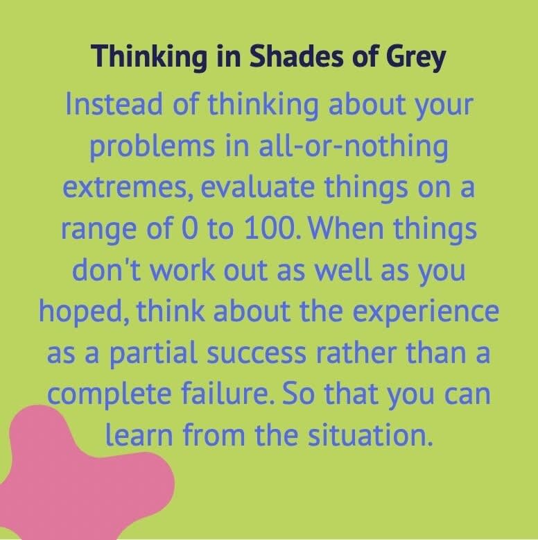Alternative Viewpoint: Think of a more realistic and balanced way to view the situation. This step involves replacing negative thoughts with constructive ones.
