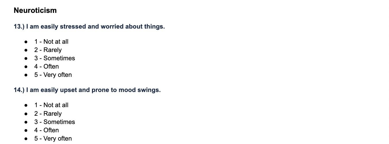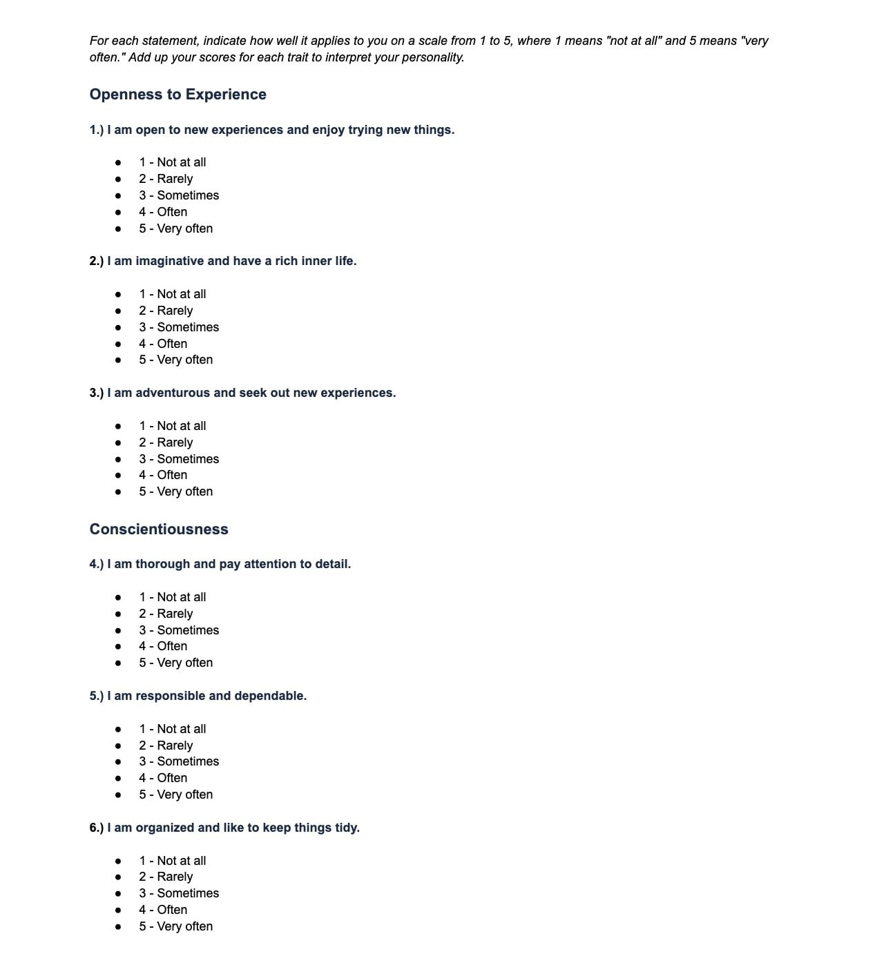 The Big Five personality traits model is a widely respected theoretical framework in psychology that describes five broad dimensions of human personality: Openness, Conscientiousness, Extraversion, Agreeableness, and Neuroticism, often remembered by the acronym OCEAN. This model provides a comprehensive, empirically driven view of personality that is applicable to all adults, regardless of demographic or cultural differences.