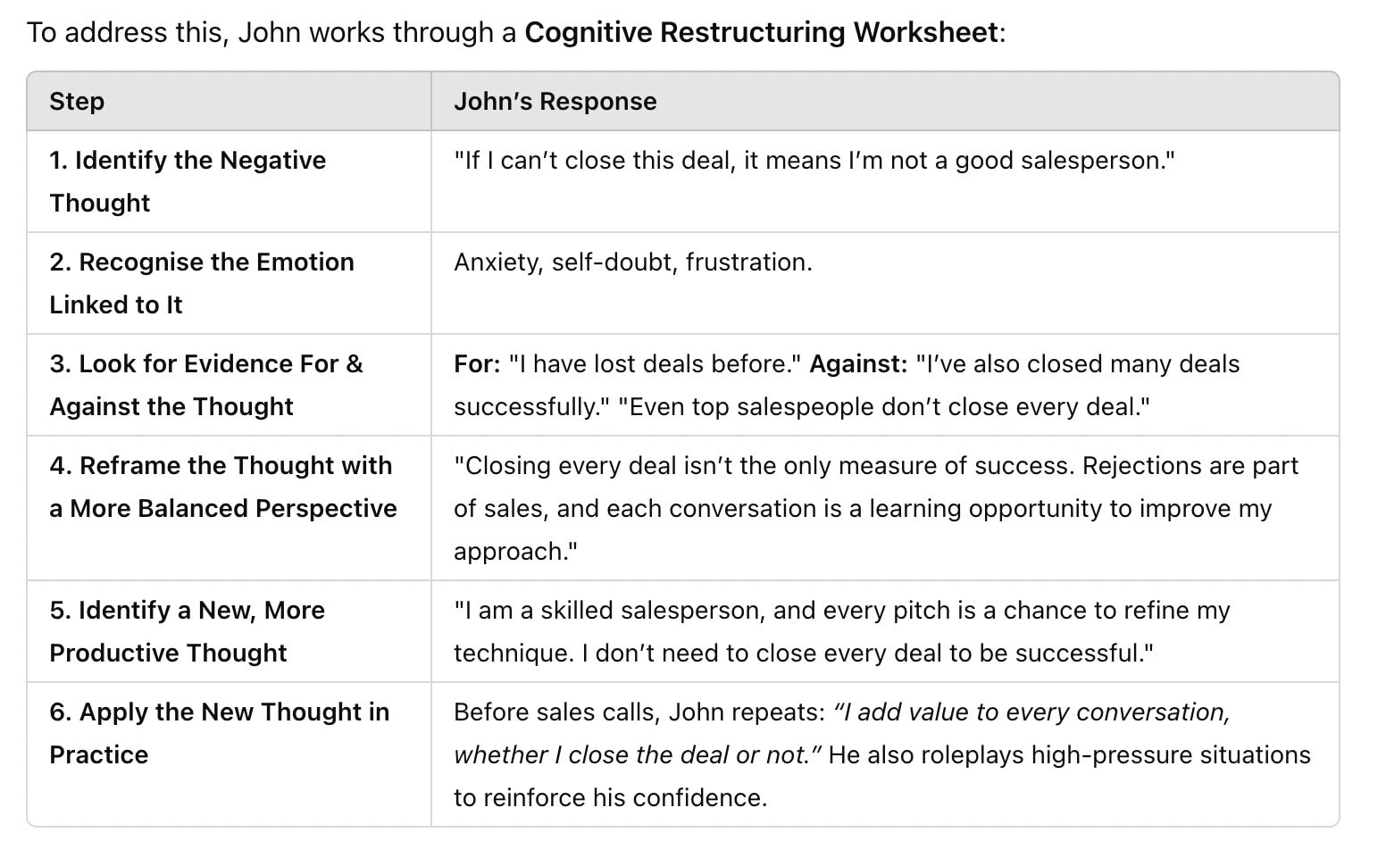Using a Cognitive Restructuring Worksheet to Enhance Workplace Performance and Sales Confidence